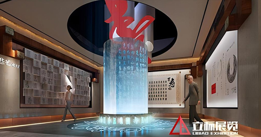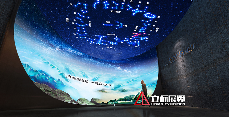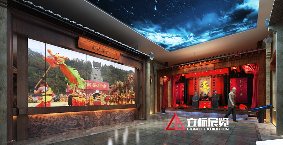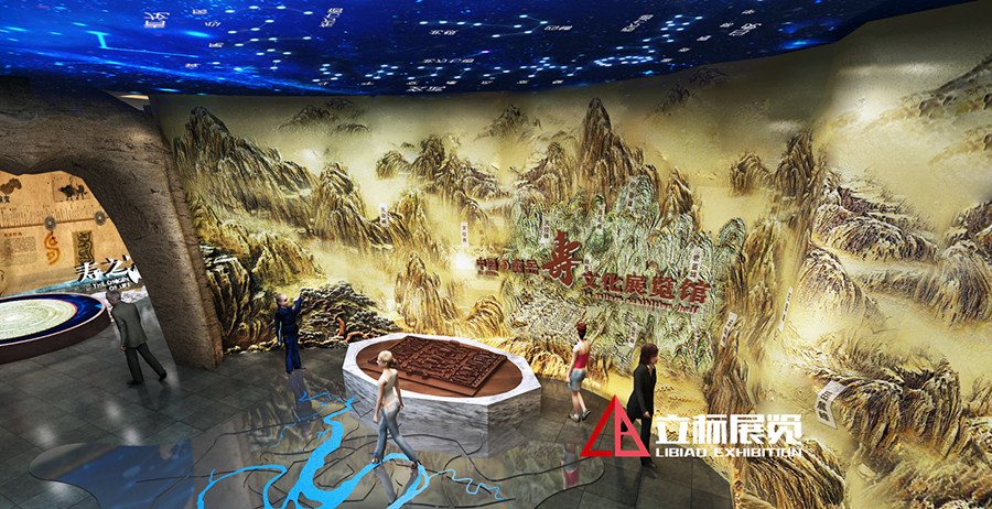 在展館設計中,我們以多方的廣闊視角,以“高山仰止 壽岳衡山”為設計概念主題,以奧運會、世博會為標志的現代展覽語法為設計藍本,原創出從空間語匯的獨特到裝飾材料的精致展陳形式來,打造出“典雅、厚重、前沿、科技”的展示空間氛圍,構建出壽文化取得的成果以及對南岳壽文化傳播的決心。