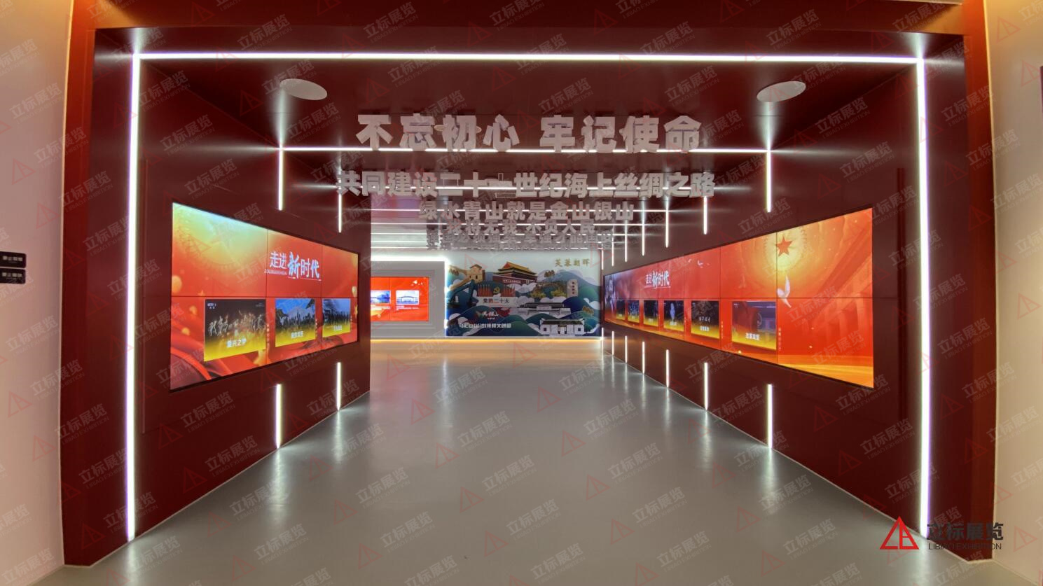 湖南涉外經濟學院黨建與思政教育基地布展面積1900平米,展陳圍繞“薪火相傳凝心鑄魂”主題,設計“開天辟地”“天換地”“翻天覆地”“驚天動地”四大板塊,講述中國共產黨一百年來為人民謀幸福、為民族謀復興的奮斗歷程。以史為鑒、開創未來,引導和激勵廣大青年增強“四個意識”、堅定“四個自信”、做到“兩個維護”,牢記“國之大者”,立足百年大黨新起點,置身百年未有大變局,接力百年奮斗新征程,為全面建設社會主義現代化國家、奪取新時代中國特色社..