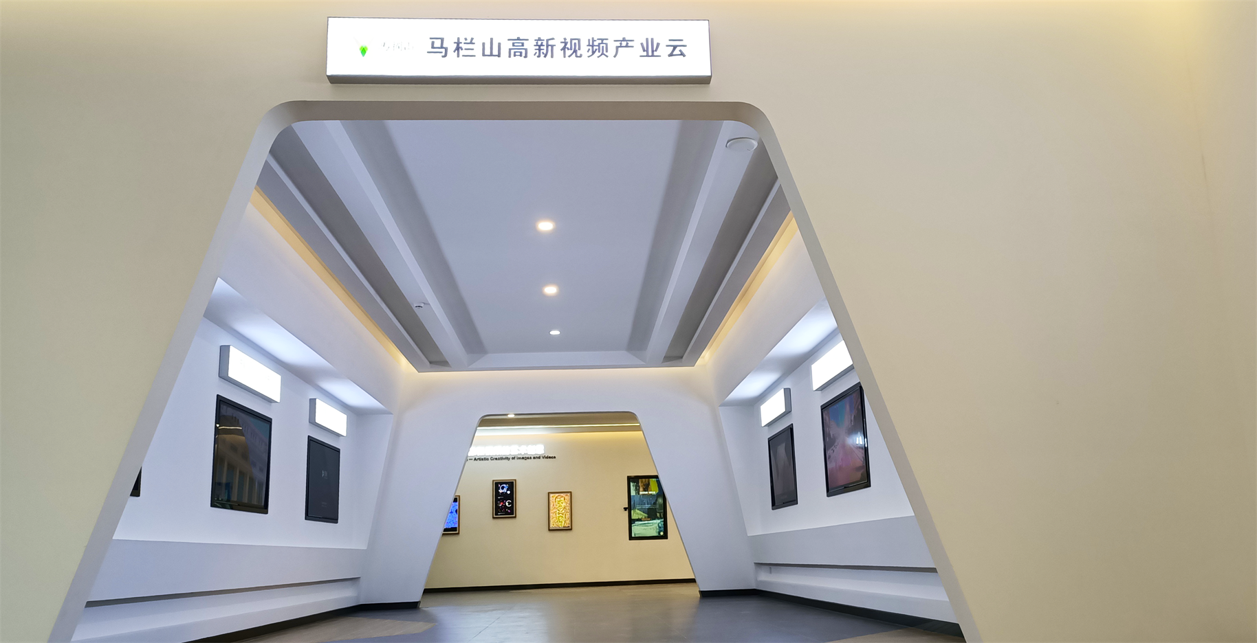 該項目的主要設計元素為數字科技的 “云”,瀏陽河畔的 “水”。馬欄山作為中國視頻文化產業的風向標,是文化和科技的集中交融之處,智慧之云激蕩著她的精魂體魄,未來之子孕育在她的腹中。而她自身又處在瀏陽河的第八道灣懷中,湖湘之水蜿蜒而過,勾勒出她 “V” 字形的身姿曲線。我們通過在有效的布展空間內,充分利用聲、光、電等現代新媒體技術,創造兼具湖湘地域文化和科技創新文化兩大特色的展示模式,為觀眾帶來新奇的審美藝術享受。