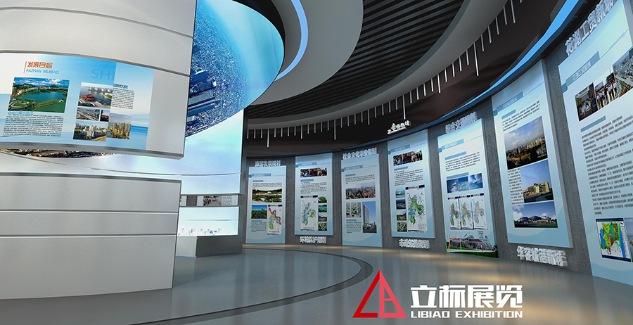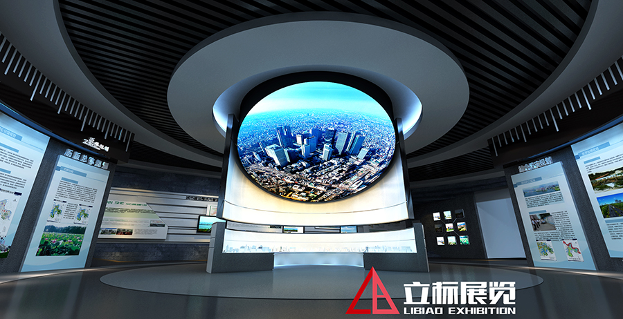 序廳設(shè)計簡潔高雅而不失恢宏大氣,天花以婉轉(zhuǎn)流美的曲線勾勒出奔騰的長江意象,與地板上的寫意地圖上下呼應(yīng),讓觀眾在俯仰之間感受鄂州通江達(dá)海的優(yōu)勢區(qū)位和襟江帶湖的水韻氣質(zhì)。迎面的主題形象墻上,連綿的曲線猶如長江之波,溫潤著這座秀美的城市。波浪之上,厚重的浮雕鋪展開以“五個鄂州”為主題的壯美畫卷,山水掩映間,一座宜居宜業(yè)的組群式大城市正呼之欲出。