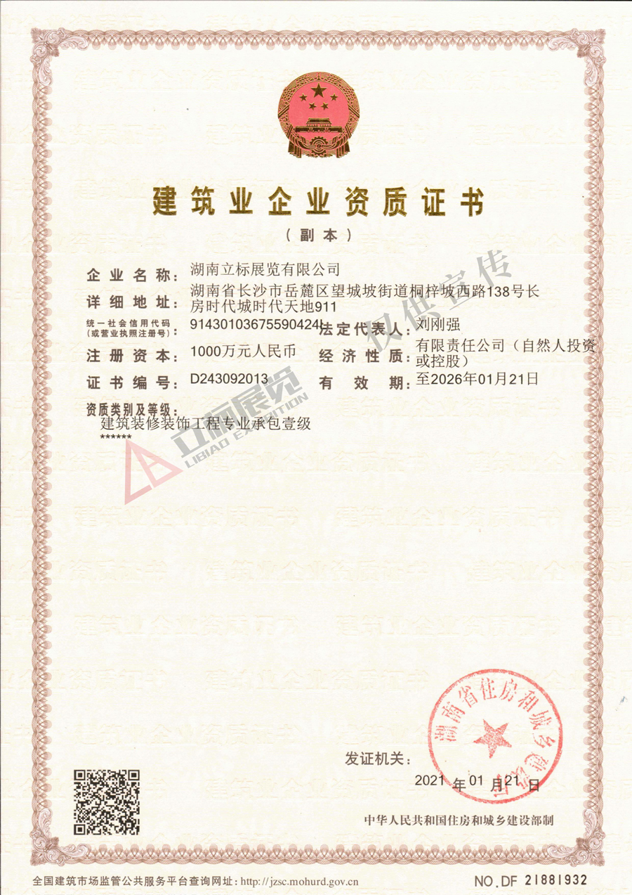 此次權(quán)威認(rèn)證,標(biāo)志著立標(biāo)展覽具備從事建筑裝修裝飾工程設(shè)計(jì)與施工的領(lǐng)先服務(wù)和過硬的技術(shù),將在展覽展示行業(yè)的相關(guān)工程項(xiàng)目領(lǐng)域獲得更大的發(fā)展空間,是公司發(fā)展史上又一重要里程碑。立標(biāo)展覽有實(shí)力并將一如既往致力于為廣大客戶提供一流的精品工程與服務(wù)。