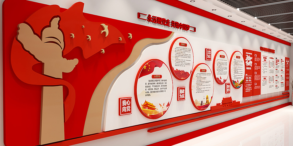 黨建館一般展示黨建成果、歷屆領導的貢獻以及未來跟黨發展的方向。黨建館不僅是面向相關政府部門,更是面向人民群眾的專業性展館,其建設目的在于拉近和人民群眾之間的聯系。黨建館設計,是近年來國家大力推行紅色文化黨建教育的重要方式。那么,黨建館展廳設計需注意哪些細節?