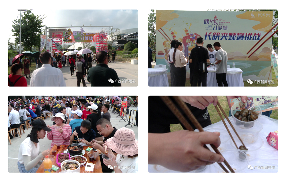 螺螄粉小鎮是柳州市重點打造的文旅和螺螄粉產業項目。11月21日, 2020第三屆螺螄粉小鎮文化節開幕了,那今年的文化節都有什么好吃的和好玩的呢?今年的螺螄粉小鎮文化節,除了傳統的螺螄粉集市以及螺螄粉品嘗區域以外,還增設了螺友競技項目——涂鴉墻、長筷夾螺螄挑戰、嗦螺螄比賽等,吸引了不少市民參加。而整個文化節中,吃貨們最期待的恐怕要數百螺宴了。
