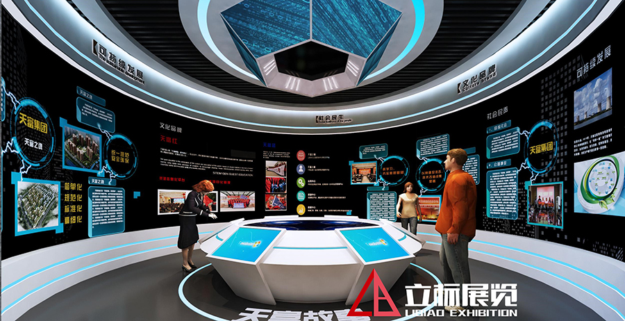 以天富文化內涵“誠信、責任、創新、奉獻”作為核心理念來展開,通過系統的布展脈絡與多亮點呈現相結合的手法,傳達文化理念、企業精神、事業發展、社會責任。營造合理的空間設計語境,通過以活力紅、智慧灰、科技藍以及生態綠為主色調的色彩搭配和現代簡潔的造型設計等,烘托主題內容。