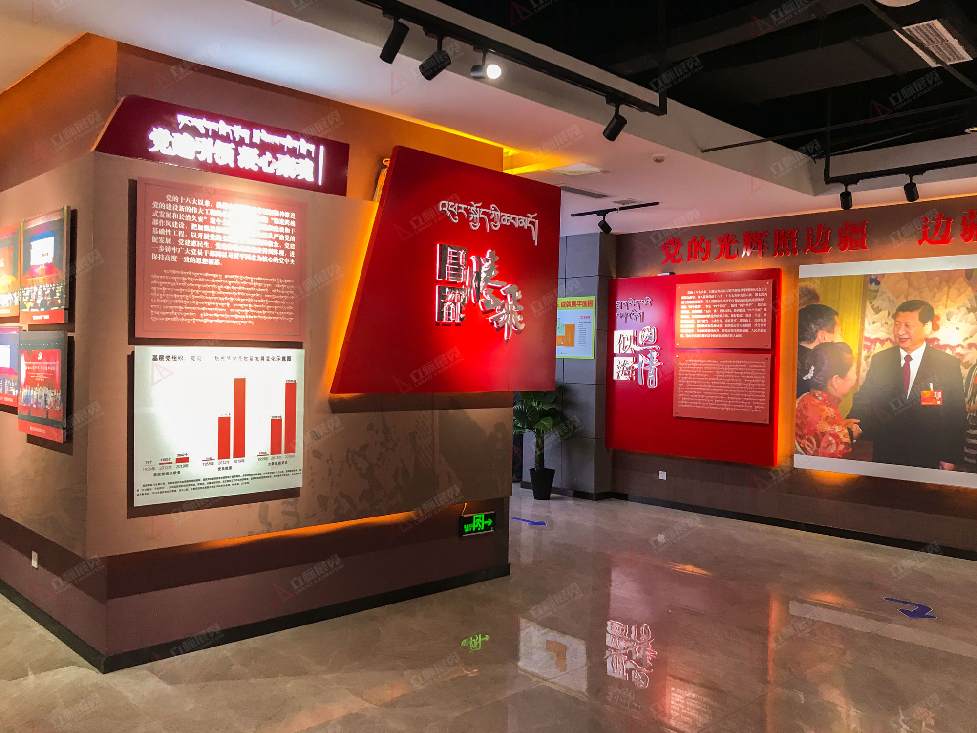 展覽分為序廳、崢嶸歲月、改革開放·潮涌三江、新時代·新昌都·新輝煌和展望未來五個部分,以歷史照片和相關實物、影像資料等,以小見大,全面、系統、準確、形象地展現一個經濟快速發展、民生不斷改善、文化繁榮昌盛、民族融合共建、社會和諧穩定、人民幸福安康、生態持續良好的新昌都。